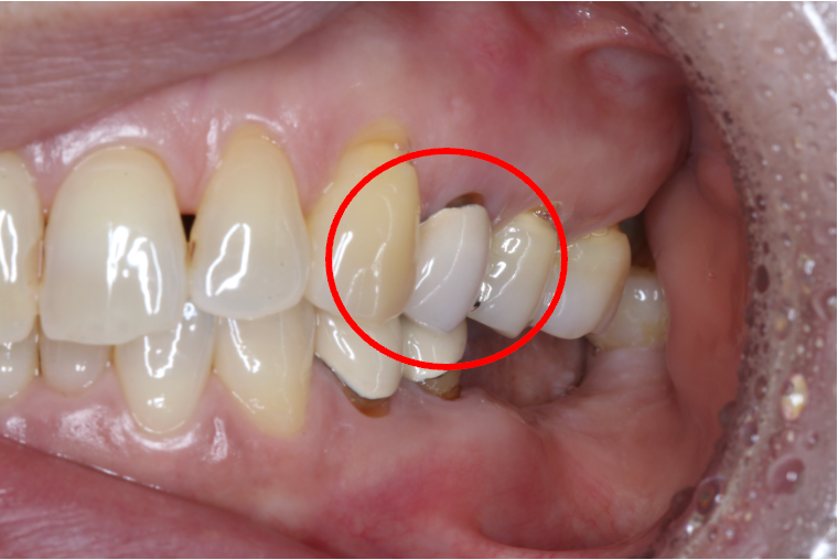 • かぶせた歯のフチや、周りの歯肉が黒くなっている