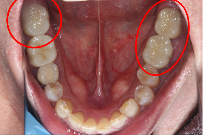 右下4番、5番、6番、7番 右上6番